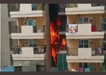 नयी दिल्ली:दिल्ली के पास ग्रेटर नोएडा में एक रिहायशी सोसाइटी में भीषण आग लग गई है और दमकल कर्मी आग...