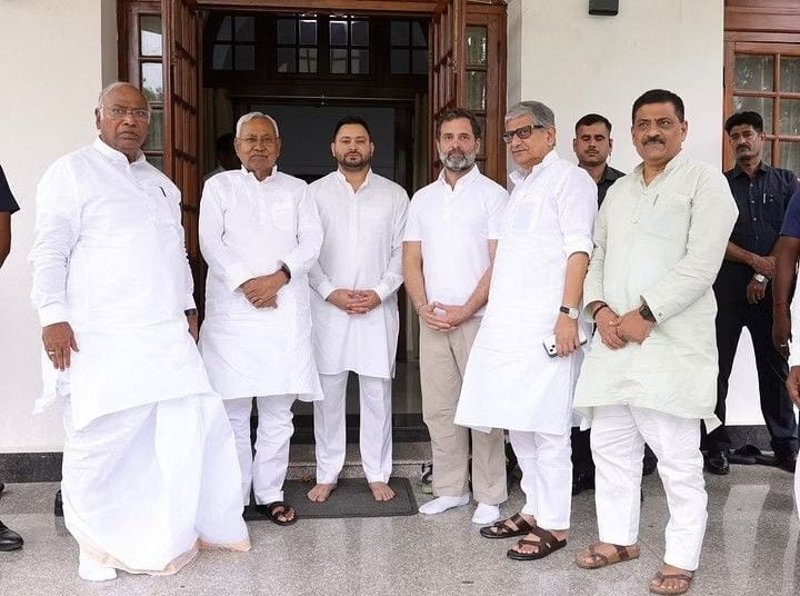 2024 के आम चुनाव से पहले एक संयुक्त विपक्षी मोर्चे को खड़ा करने के एक और प्रयास में, राहुल गांधी ने बिहार के मुख्यमंत्री नीतीश कुमार और उप-मुख्यमंत्री तेजस्वी यादव से मुलाकात हो. इस बैठक में कांग्रेस अध्यक्ष मल्लिकार्जुन खड़गे भी मौजूद थे. बैठक एक बाद राहुल गांधी ने कहा कि आज विपक्षी दलों को एकजुट करने के लिए एक कांग्रेस के नेता राहुल गांधी ने कहा”ऐतिहासिक कदम” उठाया गया है.
