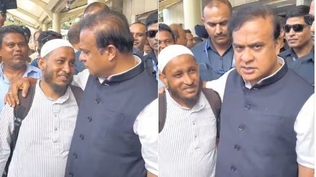 इस वीडियो में नजर आ रहा है कि सीएम हिमंता किसी कार्यक्रम से बाहर निकल रहे हैं। वहां पर टोपी पहने एक मुसलमान व्यक्ति खड़ा है। हिमंता उस व्यक्ति को गले लगाते हैं। इसके बाद वह उससे पूछते हैं, ‘आप कैसे हैं? अच्छे हैं?’ जवाब में वह मुसलमान व्यक्ति गर्दन हिलाता हुआ मुस्कुराता रहता है। इसके बाद हिमंता उसके कंधे पर हाथ रखकर आगे बढ़ते जाते हैं। इस बीच वह उससे लगातार बातें करते हैं।