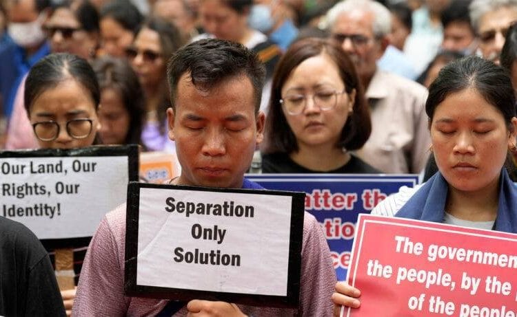 आदिवासी जुआन वैफेई न केवल हथियारों से लैस है, बल्कि मारने और मरने के लिए भी तैयार है। वह पूरा दिन एक अस्थायी बंकर की सैंडबैग की दीवारों के पीछे रहता हैं। उसकी उंगलियां 12-गेज शॉटगन के ट्रिगर पर टिकी होती हैं। दूसरी तरफ उसकी बंकर के लगभग एक हजार गज आगे, लंबी हरी घास और जंगली फूलों के मैदान के बीच मैती हिंदू हैं, जो आदिवासी कुकी जैसी ही सैंडबैग किलेबंदी के पैरापेट से नजर रख रहे हैं और वे भी सशस्त्र तथा तैयार हैं।